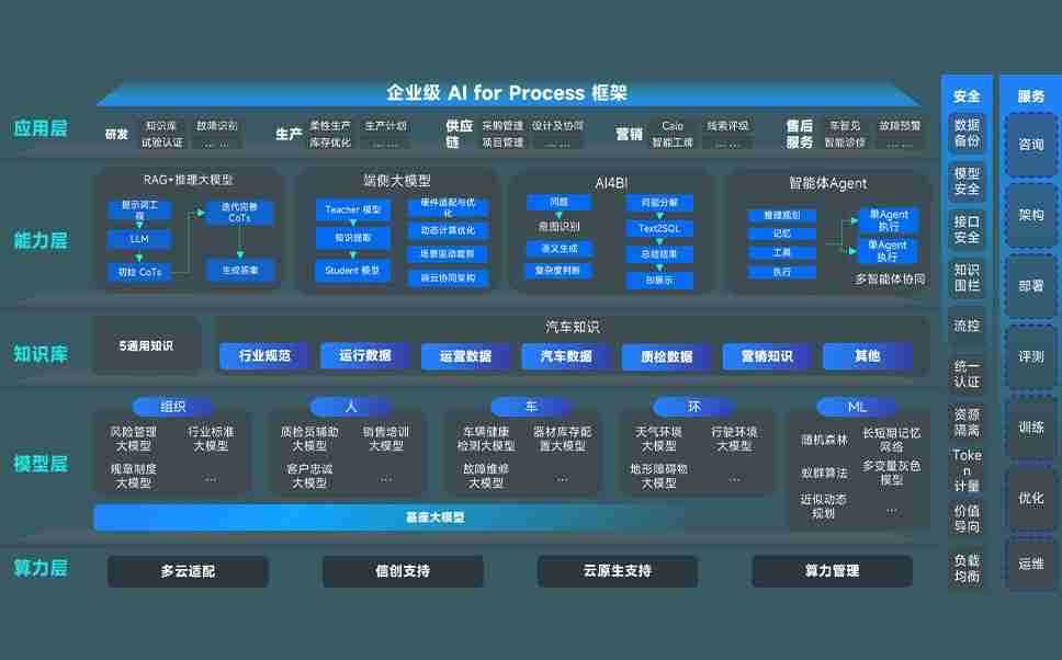 大奖888问学智车解决方案是一套基于AI技术的汽车行业智能化系统,,覆盖从底层算力到顶层AI应用的全栈方案。。。。方案由算力层、、模型层和应用层组成:算力层,,方案支持多种一体机配置,,,具备云端灵活部署、、、多云适配以及动态优化计算资源的能力;模型层,,,,大奖888问学平台版提供了企业级AI应用一站式构建与管理平台,,支持基于后训练强化技术的汽车企业专属模型的训练、、评测和运营;应用层,,,大奖888问学DeepSeek版提供包括超级员工、、智能招采、、智能营销、、、智能客服、、、、AI for BI等一系列解决方案,,可助力汽车行业实现数字化转型,,,让管理更智能、、、响应更敏捷。。
